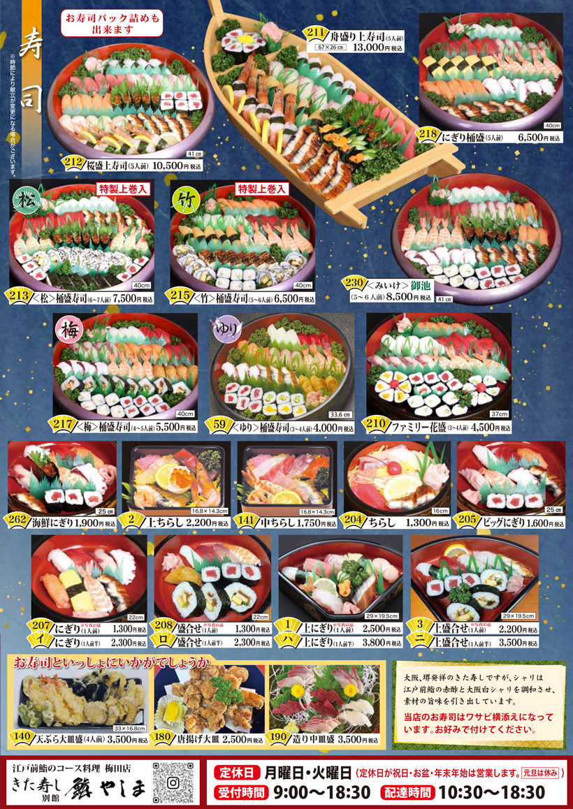 お寿司パック詰めも出来ます